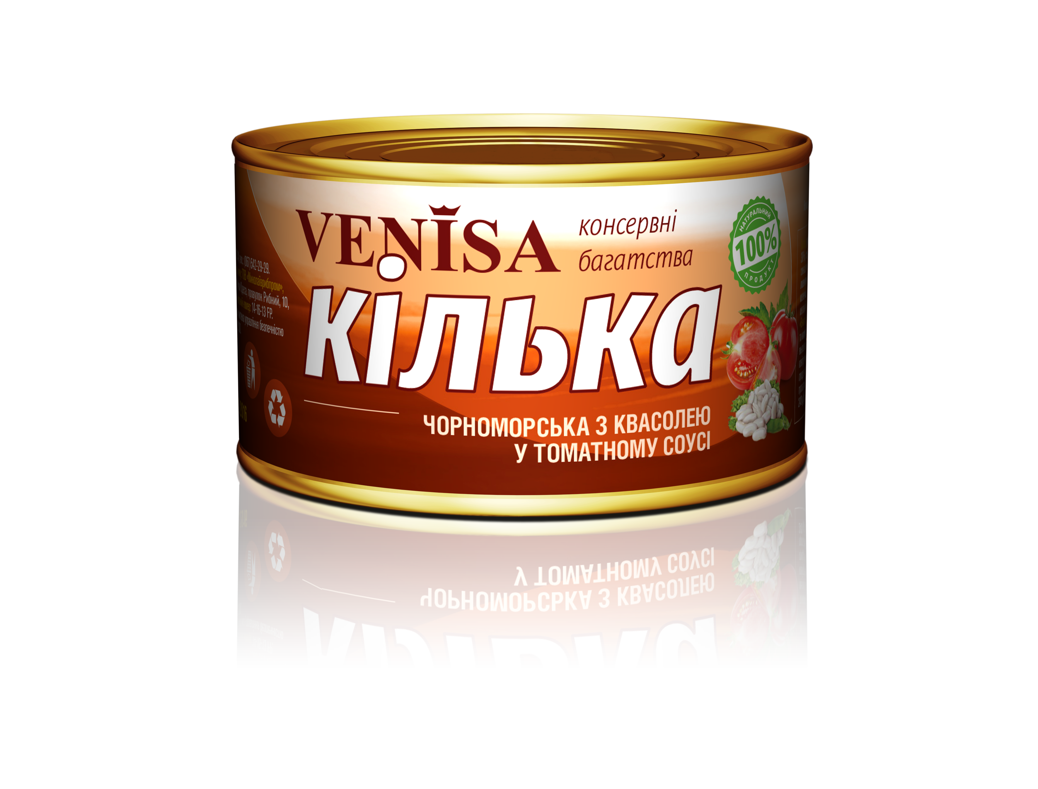 Кілька чорноморська з квасолею у томатному соусі 240 г банка №5 ТМ VENISA