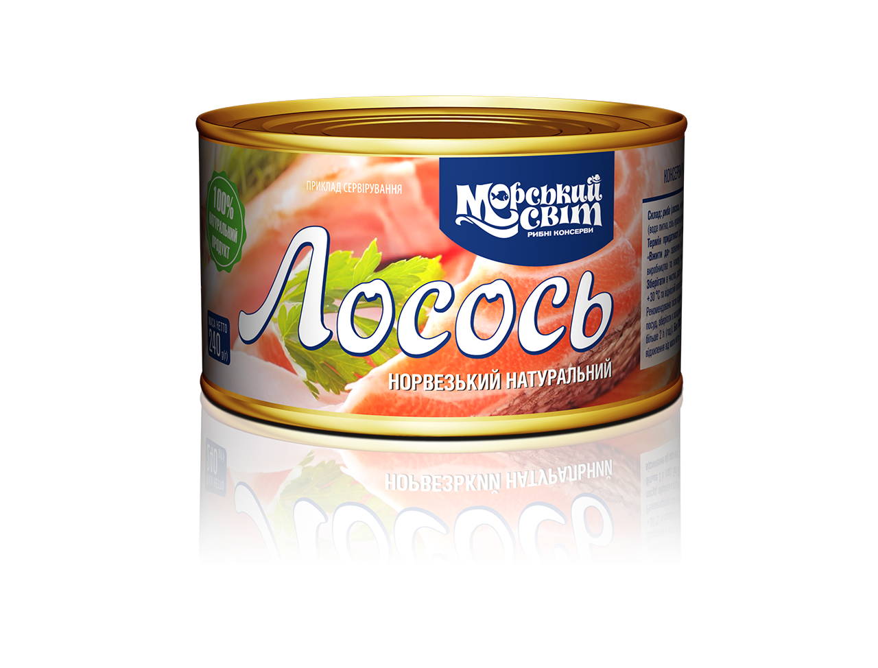 Лосось «норвежский» натуральный 240 г банка №5 ТМ Морський Світ