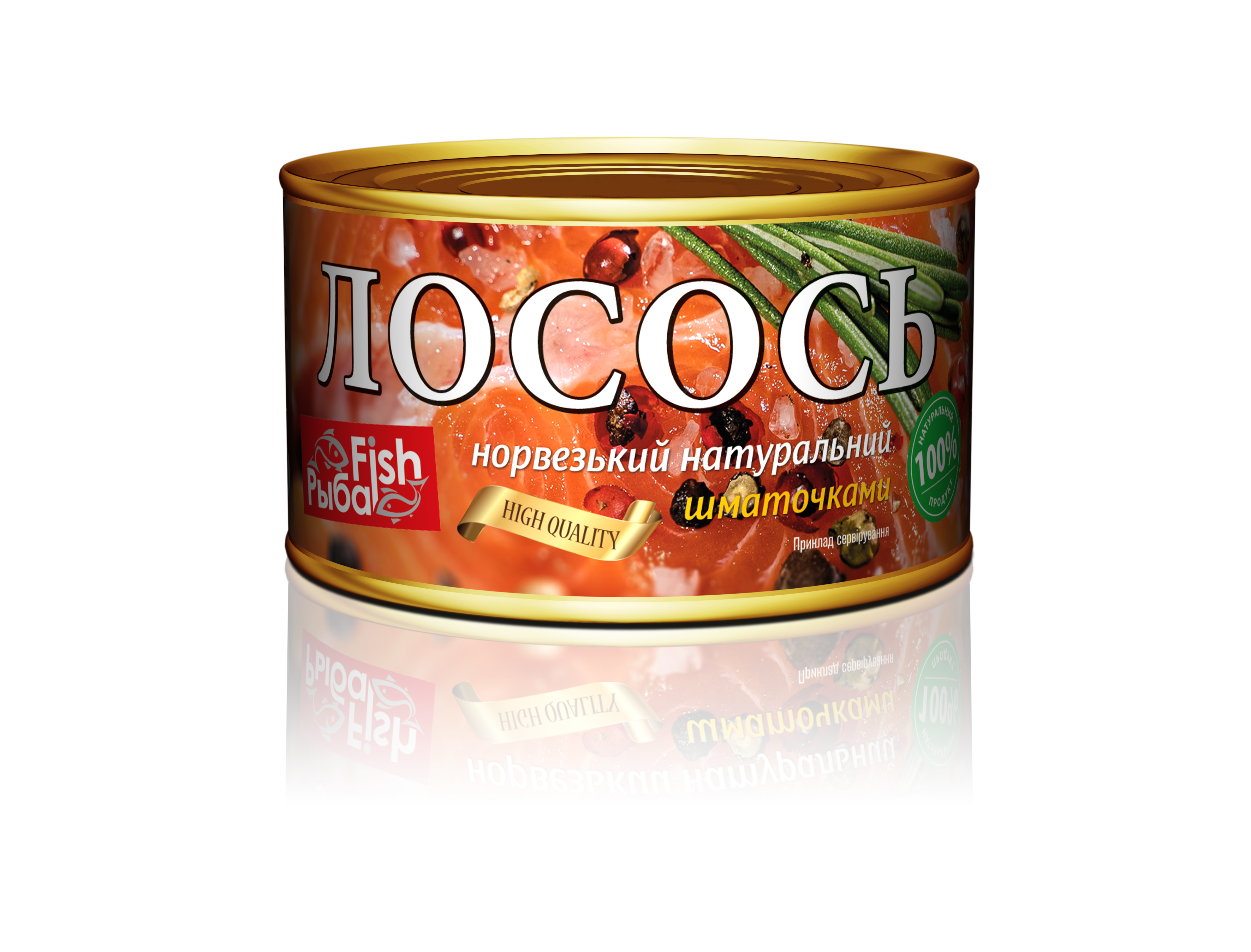 Лосось норвезький натуральний шматочками, 240 г банка №5 ТМ Риба Fish