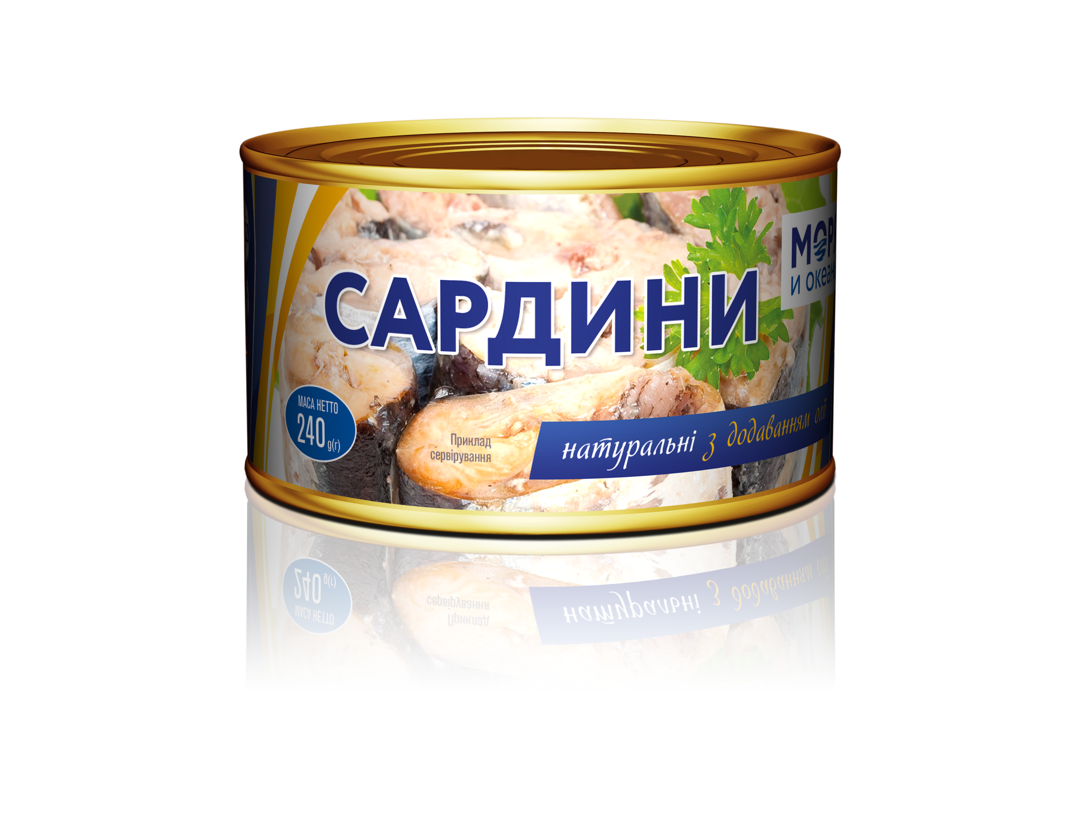 Сардины натуральные с добавлением масла 240 г банка №5 ТМ Моря та Океани