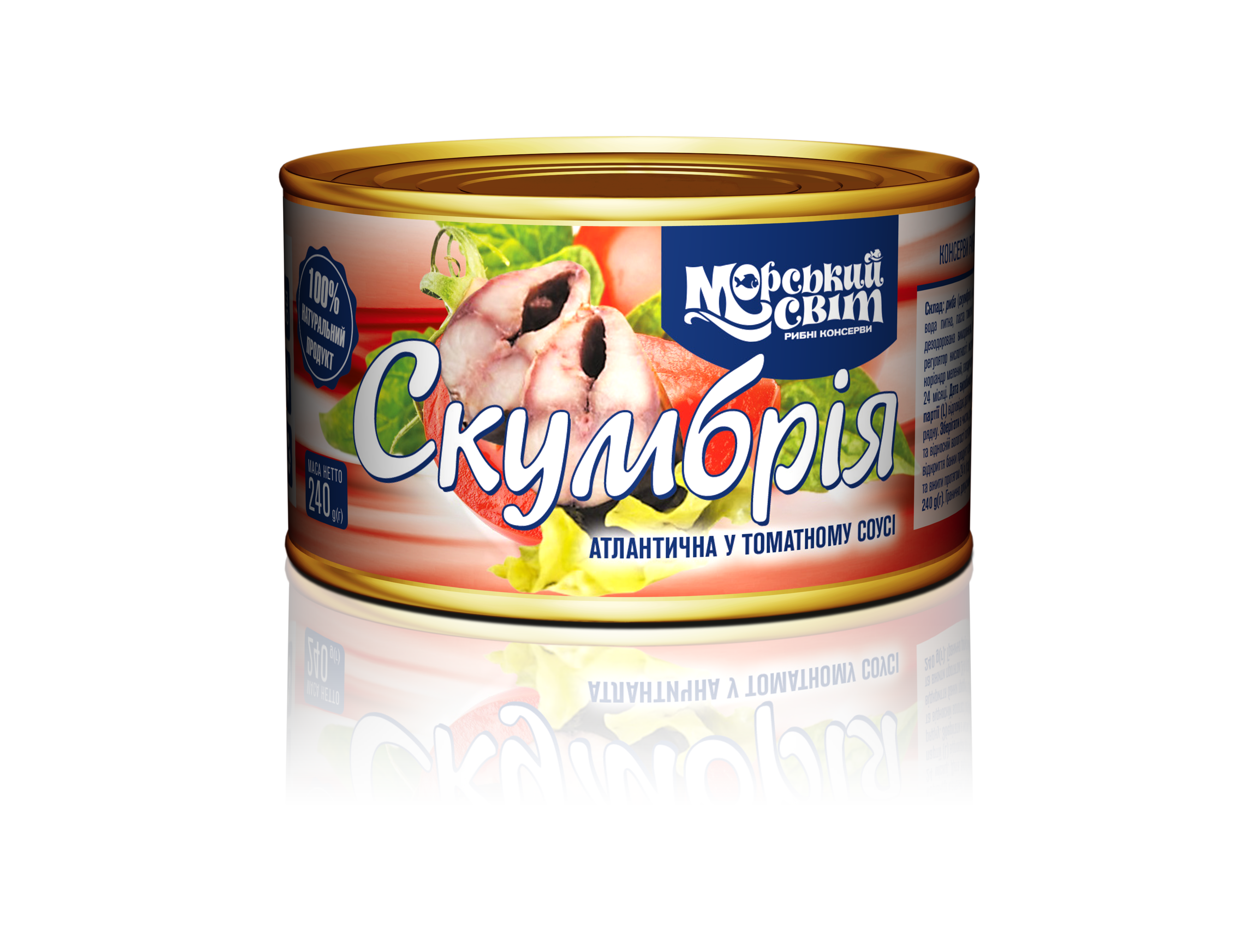 Скумбрія атлантична у томатному соусі 240 г банка №5 ТМ Морський Світ